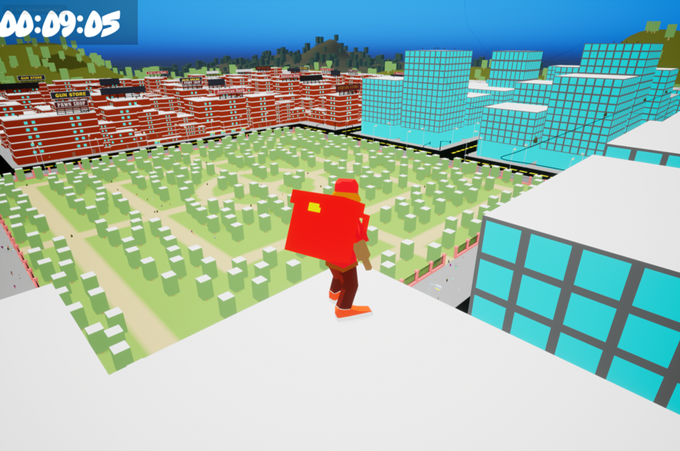 A 3D platformer with parkour elements. The aim is to deliver pizza to the other side of the city in the shortest time possible using a plethora of routes.